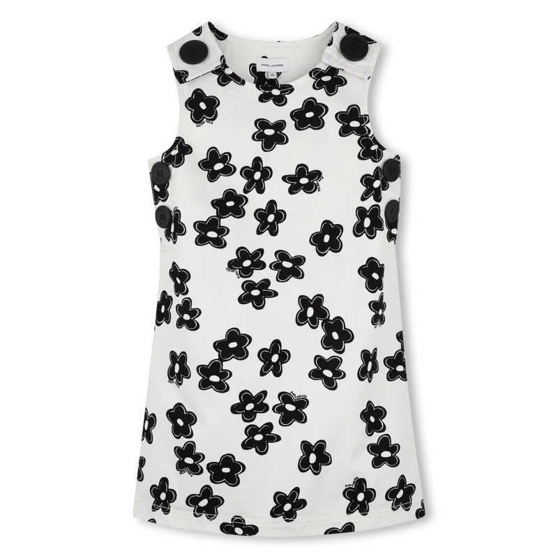 Lanciati in un universo incantevole con questo abito senza maniche a linea A di MARC JACOBS. Presenta una morbida stampa floreale in bianco e nero che stimola la creativitร . I suoi pulsanti a contrasto aggiungono un tocco di magia, mentre le tasche inclinate offrono una nota giocosa, perfetta per i piccoli avventurieri. Un pezzo indispensabile per combinare comfort ed eleganza ogni giorno.