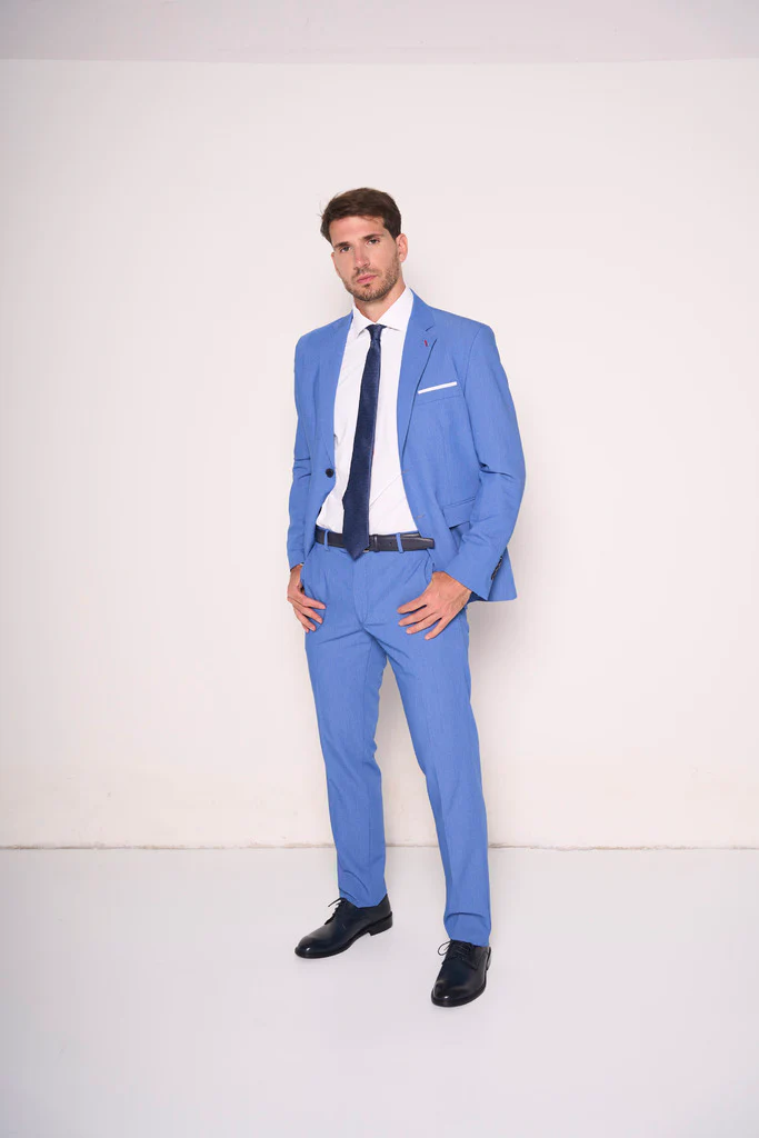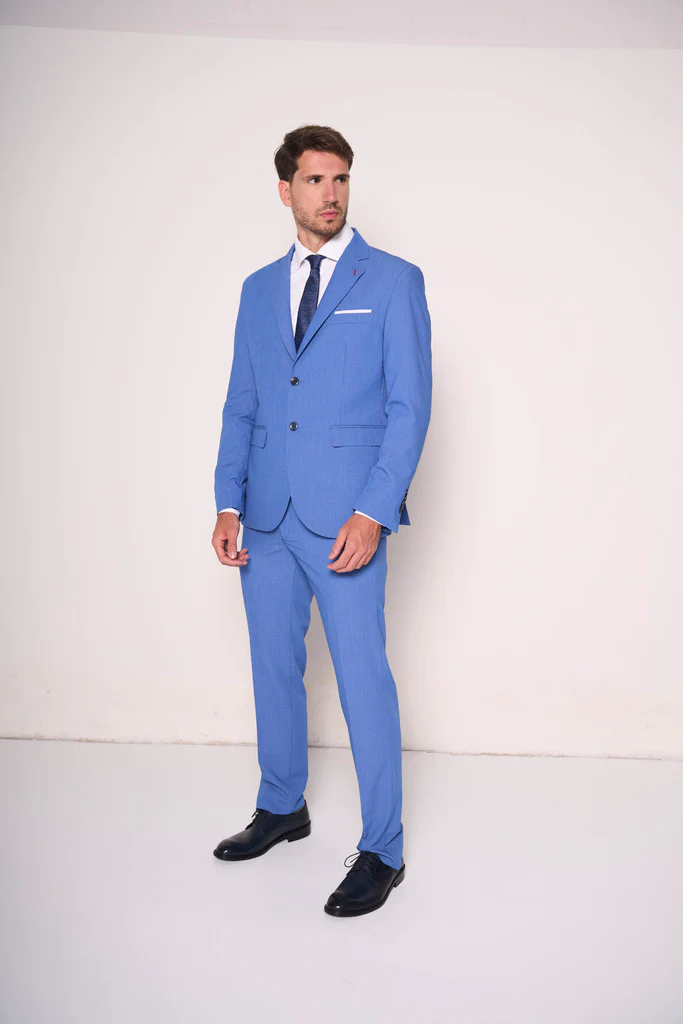 La perfezione del taglio incontra il fascino dei toni moderni in questo abito da uomo dal carattere deciso ma sofisticato. Il completo include giacca e pantaloni coordinati dal fit regolare e fluido, pensati per valorizzare ogni silhouette con naturale eleganza. La palette disponibile โ perla, blu chiaro e jeans โ lo rende ideale per occasioni formali, cerimonie o eventi speciali in cui stile e personalitร devono emergere con discrezione. Lโabito si abbina perfettamente a camicie neutre o colorate, con o senza cravatta, per look che vanno dal classico al contemporaneo.