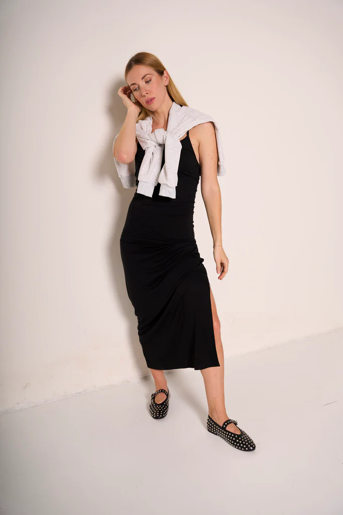 Intramontabile e ultra femminile, questo abito lungo nero รจ lโemblema della raffinatezza senza sforzo. Caratterizzato da un design pulito con spalline sottili e scollo arrotondato, veste la silhouette con naturalezza e classe. Il tessuto fluido e leggermente stretch accompagna i movimenti con grazia, mentre la lunghezza maxi lo rende perfetto sia per le serate eleganti che per eventi piรน casual dal tocco sofisticato. Facile da abbinare a sandali gioiello o accessori bold per creare ogni volta un look nuovo.