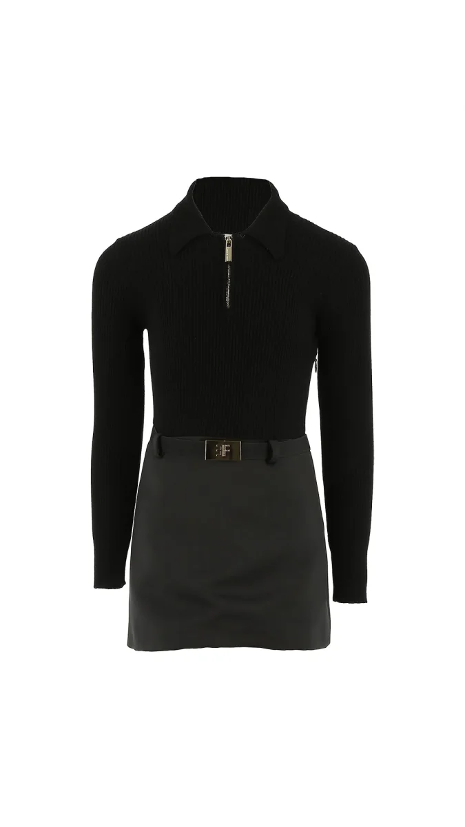 ABITO TRICOT CON GONNA NERO CON LOGO PANNA ELISABETTA FRANCHI
