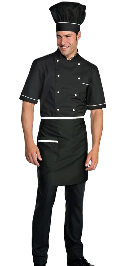 DIVISA COORDINATA ALICANTE LIGHT NERA COMPOSTA DA 1 GIACCA ALICANTE NERA LIGHT A MANICHE CORTE & 1 GREMBIULE VITA CON TASCA NERO CON PROFILI & 1 CAPPELLO CUOCO NERO CON PROFILI Giacca nera a maniche corte in tessuto leggero di misto cotone, dal collo simmetrico. Chiusura classica con bottoni estraibili a contrasto. Una giacca leggerissima […]
