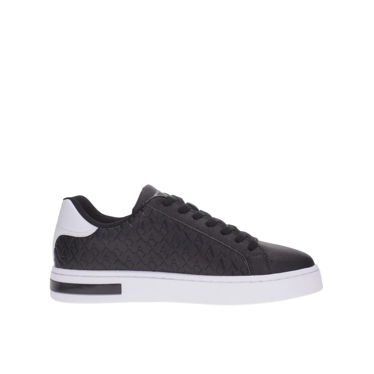 Sneaker stringata con tomaia stampata in saffiano e logo in rilievo su tutta la superficie. Un logo a contrasto sul tallone aggiunge un accento distintivo alla parte posteriore. Il design monotono e sobrio รจ arricchito da dettagli curati, rendendola la scelta perfetta per ogni giorno. XM000140 MC011