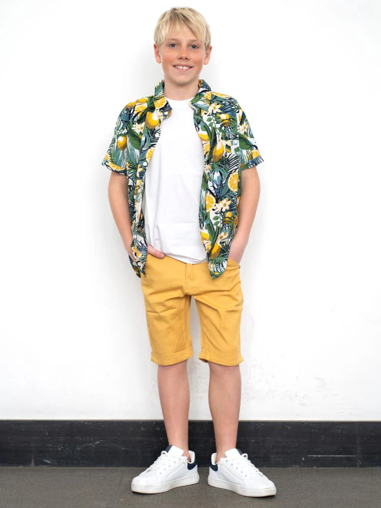 DESCRIZIONEBermuda con vita regolabile allโ€™interno e chiusura con bottone anteriore. Cinque tascheCodice prodotto: 244108 Il modello indossa una taglia 10 anni