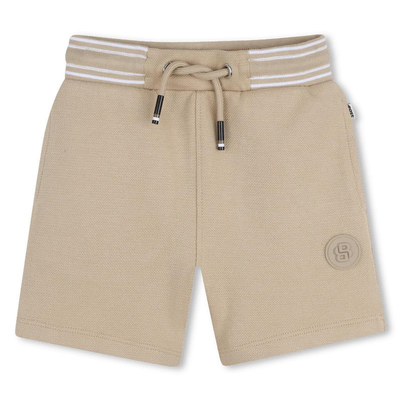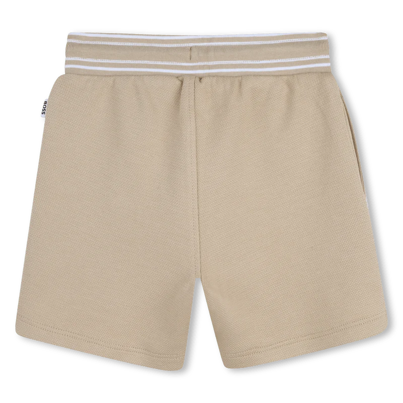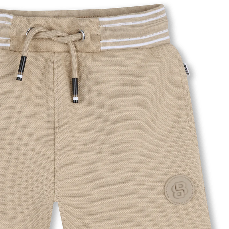 BERMUDA BEIGE IN COTONE CON ELASTICO LOGO GOMMATO BOSS