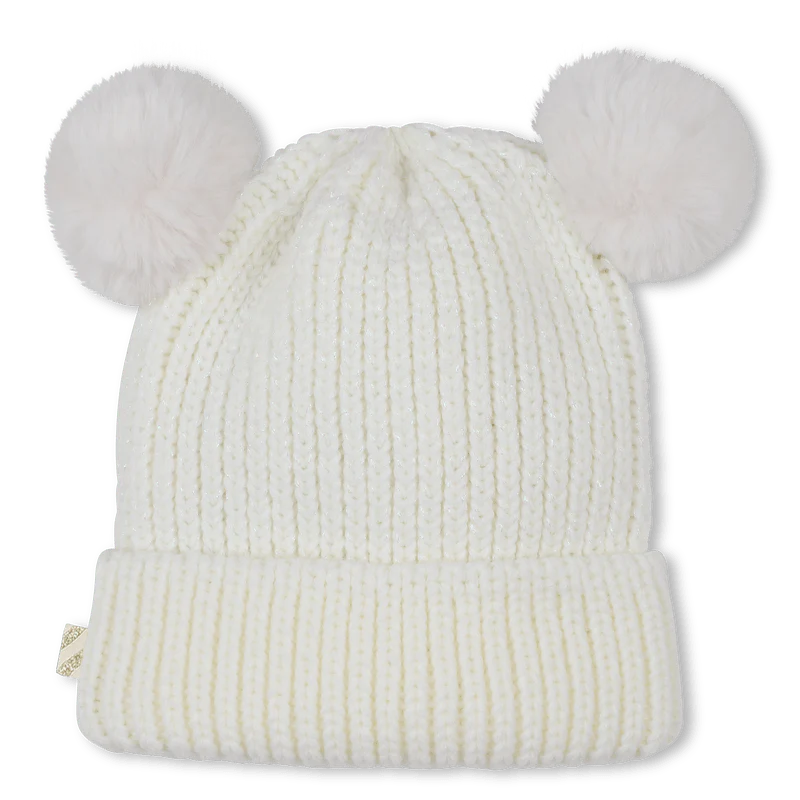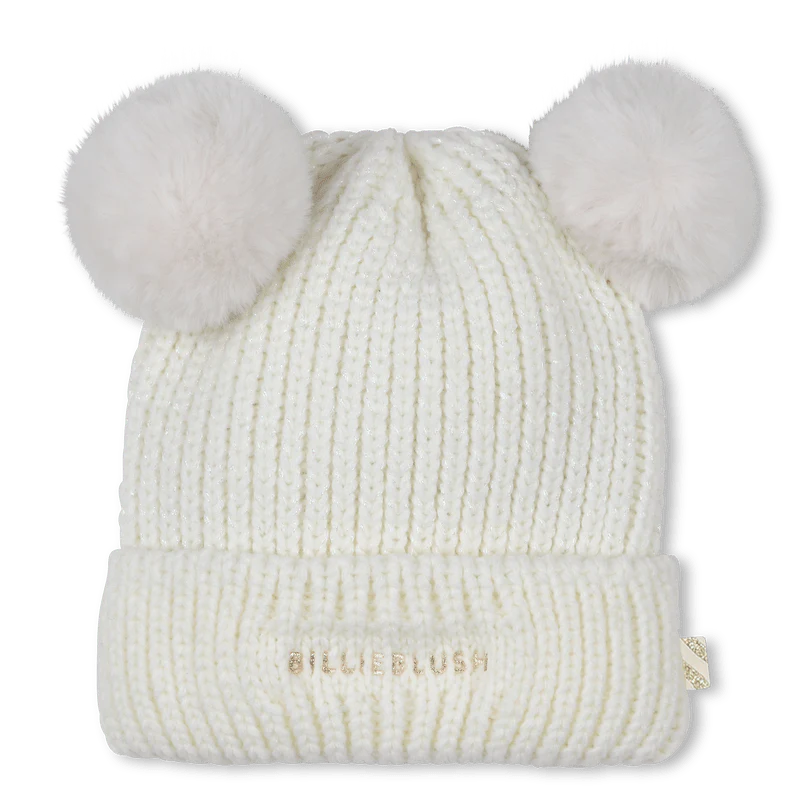 BERRETTO CON DUE POMPON PANNA CON LOGO ORO BILLIEBLUSH