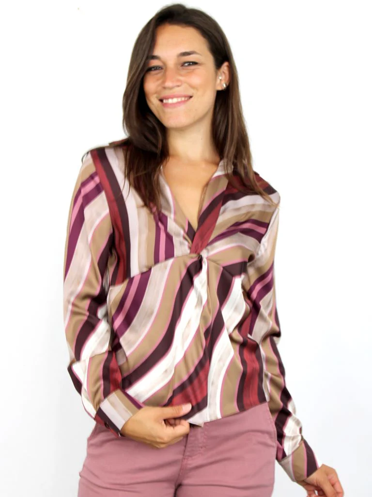 DESCRIZIONEBlusa satinata a maniche lunghe con scollo a VComposizione: 98% poliestere, 2% elastanCodice prodotto: 247195