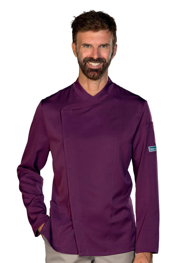 Con collo asimmetrico rifinito con bordino in tinta. Chiusura leggermente laterale con bottoni a pressione nascosti. Una giacca leggera e non stiro. Realizzata in diversi colori. E’ realizzata nell’innovativo tessuto tecnostretch: elasticizzato leggero, antimacchia e traspirante.