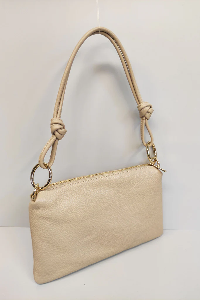 Borsa a mano in vera pelle martellata, perfetta per accompagnarti con stile in ogni occasione. Il design compatto ma capiente la rende ideale per lโuso quotidiano, mentre i dettagli in metallo dorato aggiungono un tocco sofisticato. Il manico doppio con nodo decorativo dona carattere e unโallure contemporanea, perfetta per look casual chic o piรน raffinati.