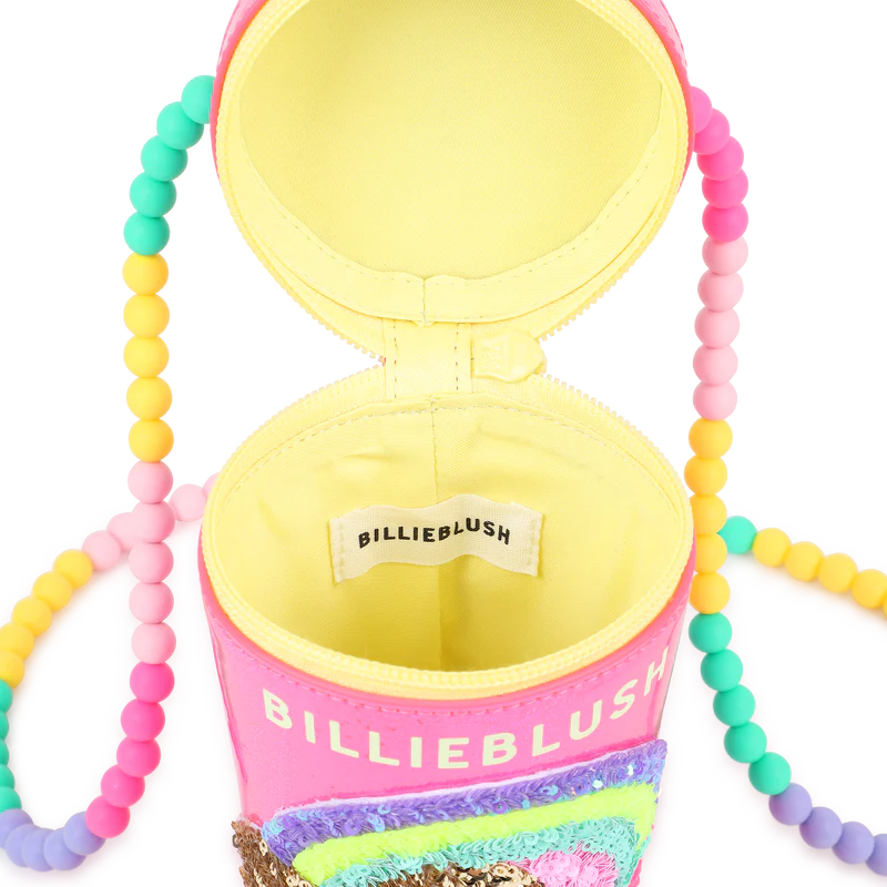 Glamour e birichina, la borsa BILLIEBLUSH Milkshake cattura l’attenzione di tutti: tessuto rosa lucido con riflessi, arcobaleno e cuore delicatamente stampati, tracolla a spalla multicolore effetto gommo con perline che aggiunge una nota giocosa. Chiusura con zip, etichetta a righe intrecciate e ingegnoso 17,5 x 8,5 cm per portare tesori e segreti. Un accessorio che ravviva l’outfit di ogni bambino.