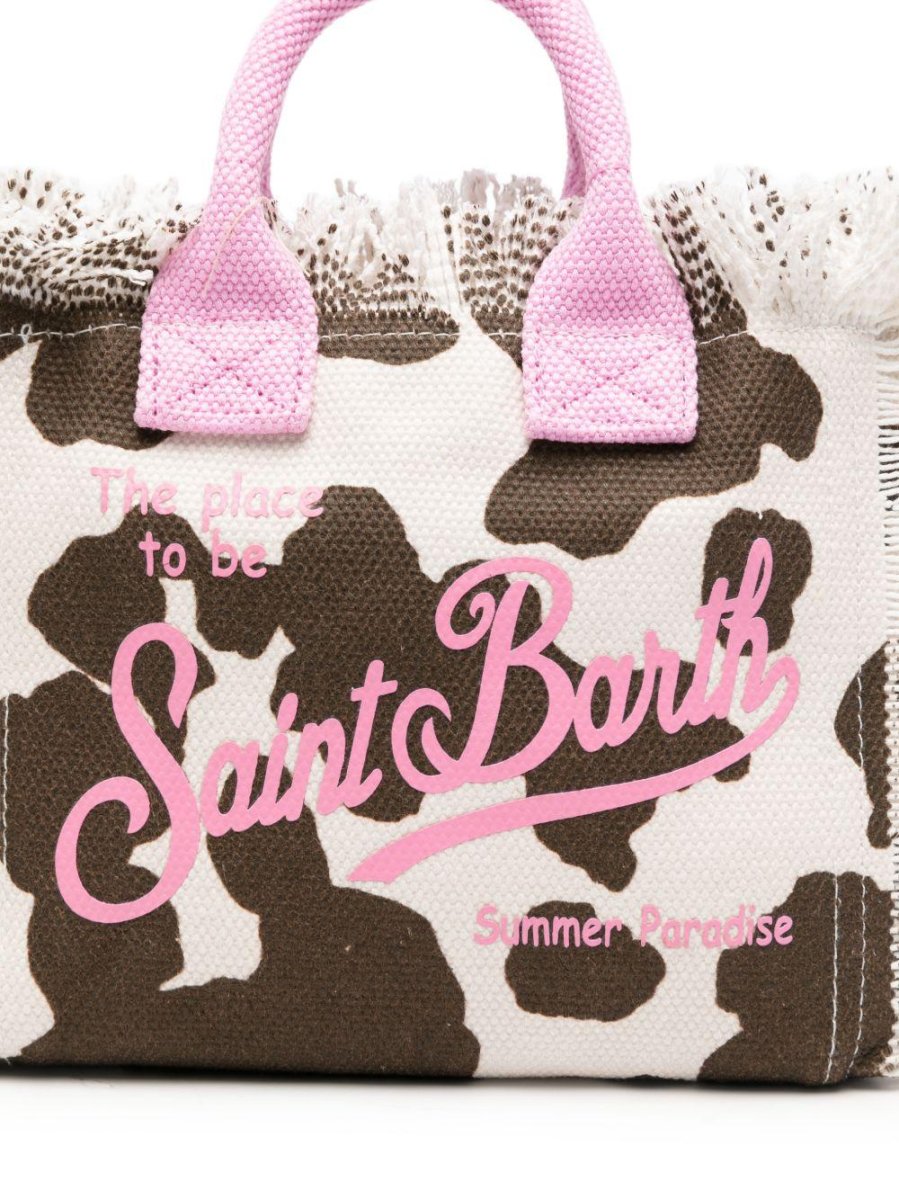Borsa Vanity Mini MC2 Saint Barth animalier con manici rosa Misure: 30 ร 25 ร 15 cmAnimalierManici rosaLogo sul davanti rosaDettagli frangeTracollaChiusura con zip