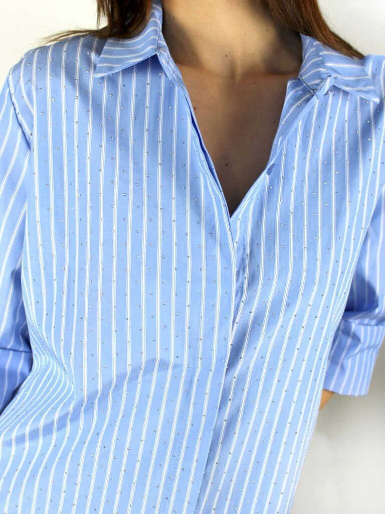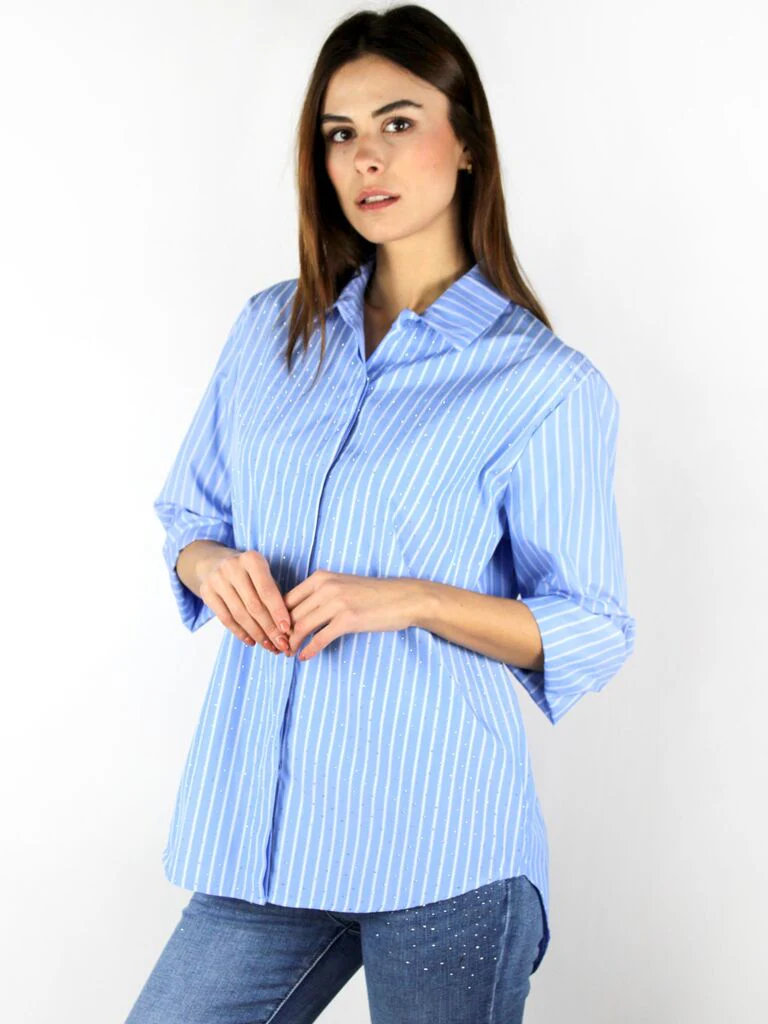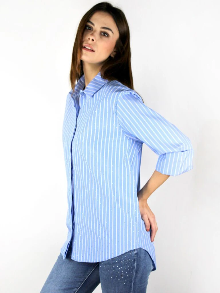 DESCRIZIONE;Camicia rigata con brillantini e bottoni.Composizione: 71% cotone, 25% p.a, 4% elastane.Codice prodotto: 257688