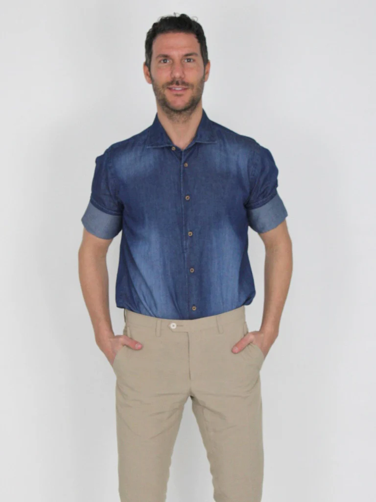 Camicia di jeans con collo alla francese morbido