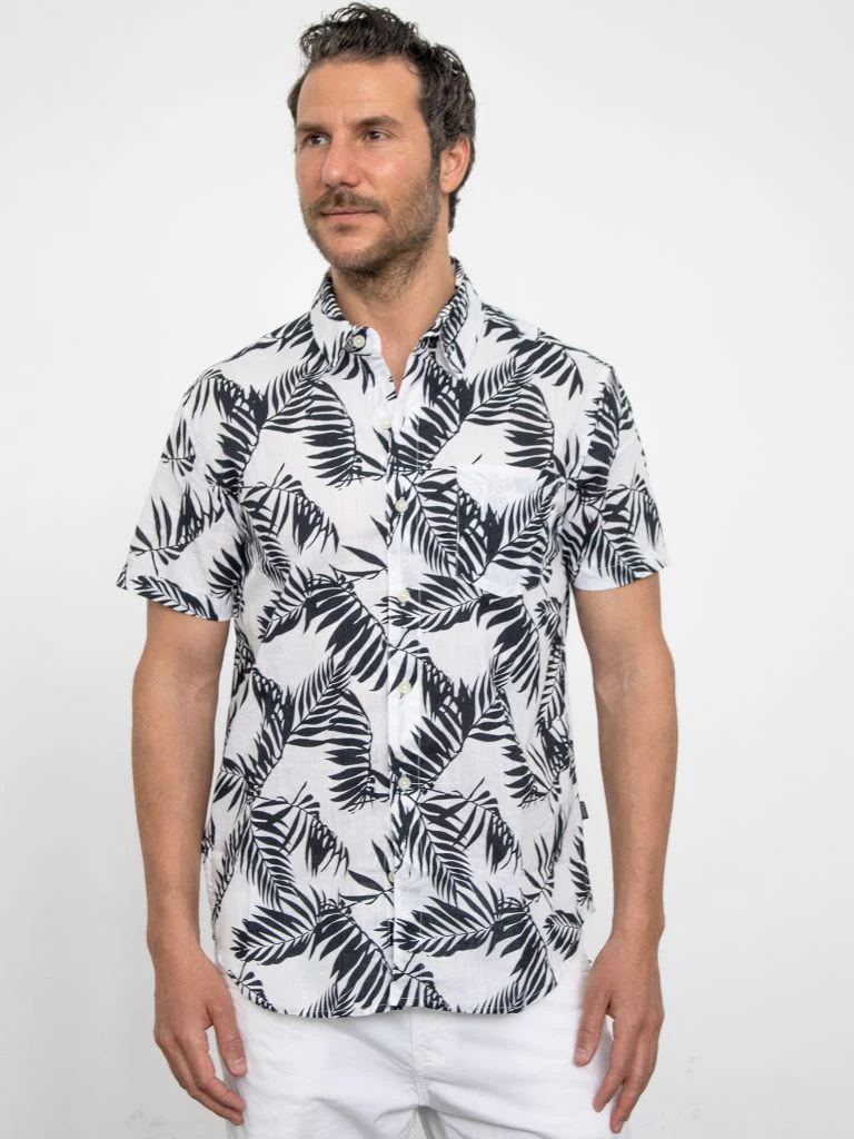 DESCRIZIONECamicia a mezza manica con colletto. Stampa foliage e taschino applicato frontaleComposizione: 100% cotoneCodice prodotto: 242167