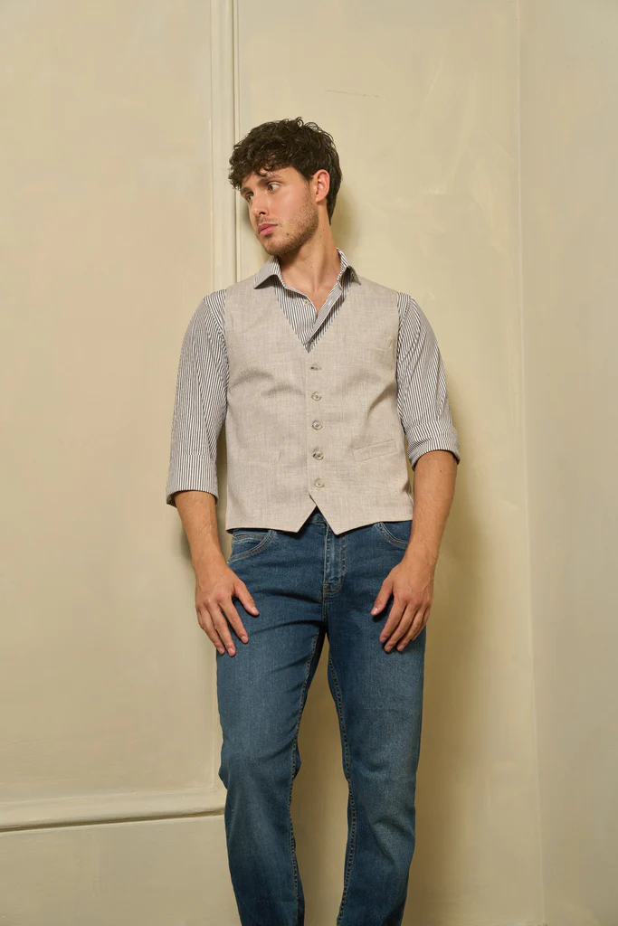 DESCRIZIONE: Camicia uomo in cotone a righe, con colletto classico, chiusura a bottoni e maniche lunghe. CODICE PRODOTTO: 260017