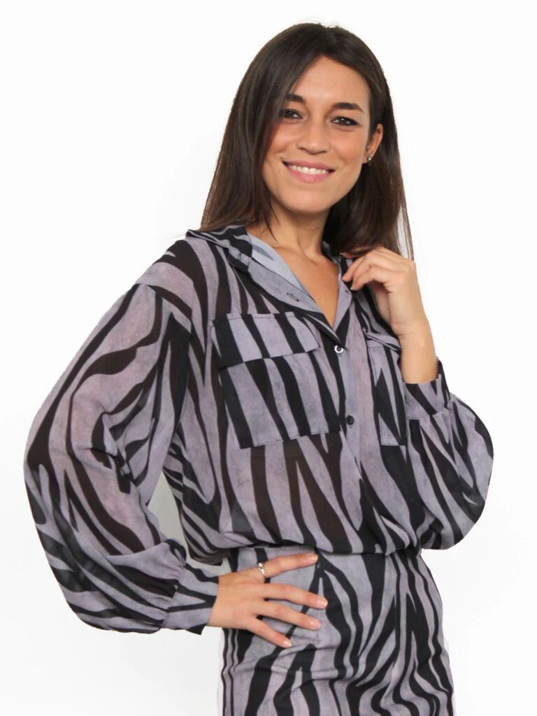 Camicia con fantasia zebrata, tasche applicate davanti, manica ampia con polsino