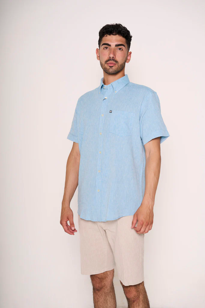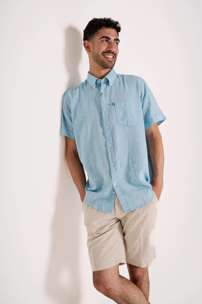 Fresco, essenziale, disinvolto: questo camiciotto in misto lino รจ il capo ideale per affrontare lโestate con stile. Il colletto botton-down, il taschino sul petto e i bottoni a contrasto creano un look curato ma rilassato, perfetto sia per le giornate in cittร che per le serate in riva al mare. Proposto in una palette estiva che include blu, azzurro, giallo e lilla, si abbina con facilitร a pantaloni chiari o bermuda per un outfit completo dal gusto contemporaneo.