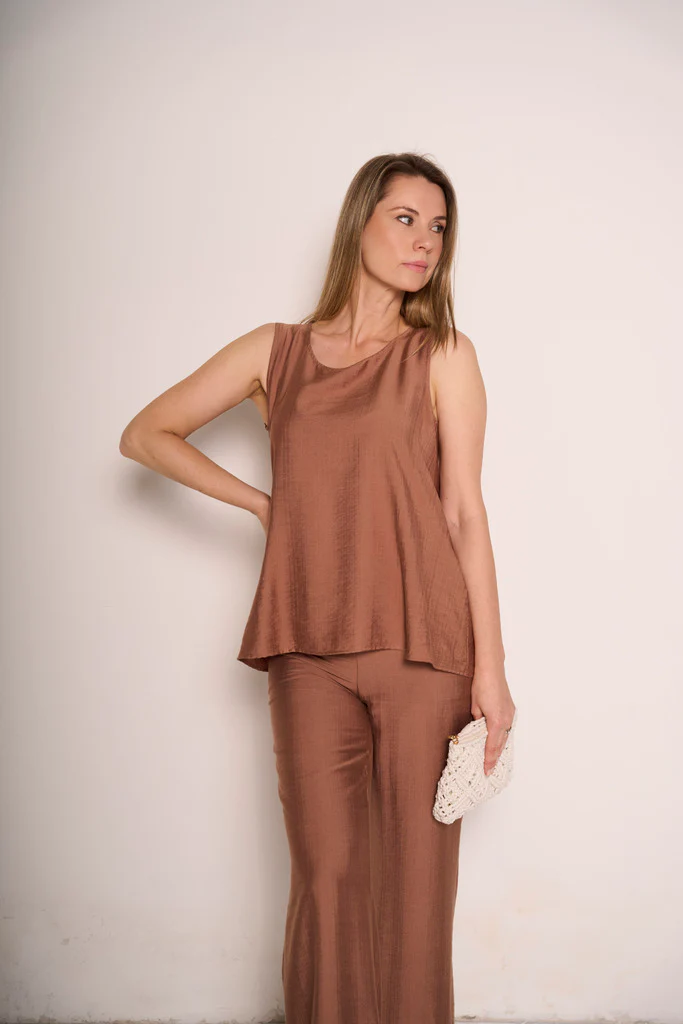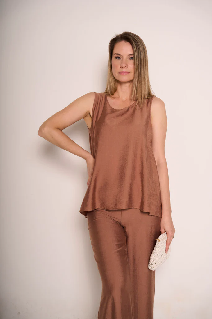 Con la sua linea pulita e il taglio più lungo sul retro, questa canottiera è un concentrato di praticità e stile minimal. Realizzata in morbido misto cotone, assicura freschezza e libertà di movimento. Perfetta da indossare da sola nelle giornate più calde o sotto capi leggeri per un look a strati sempre curato.