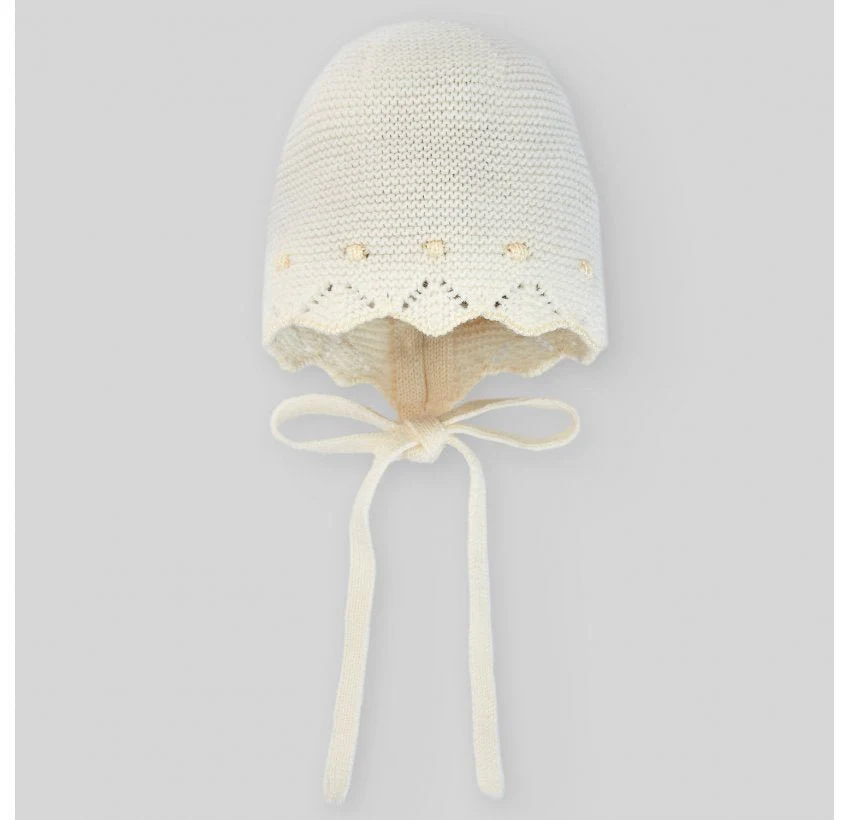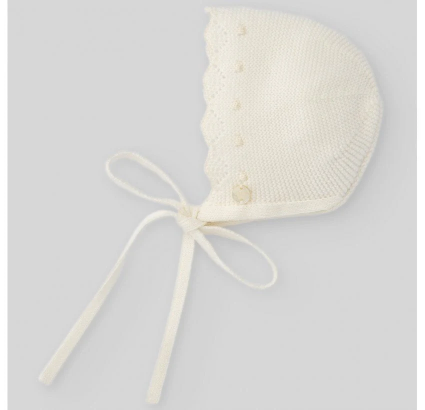 Cuffia in maglia Paz Rodrรฌguez da neonato/a con cinturini da annodare. LANA 100%