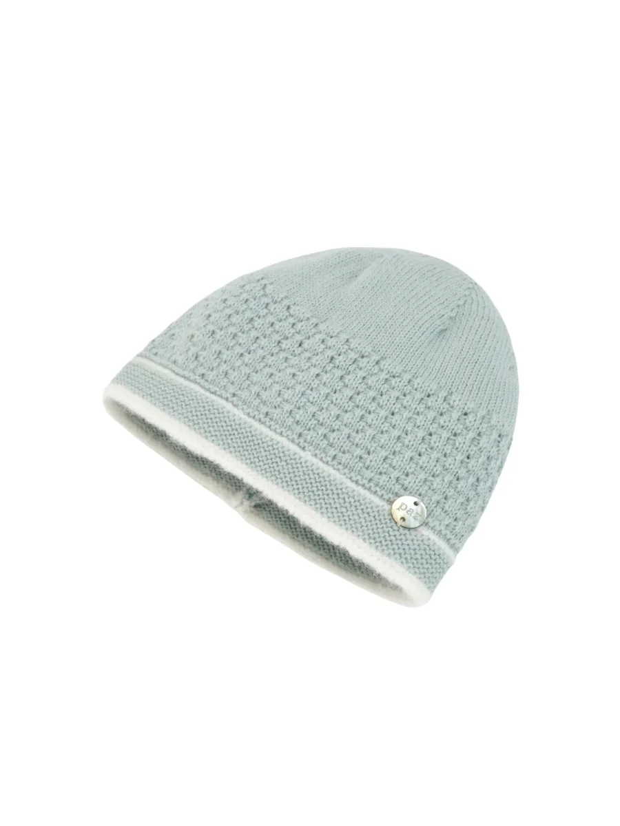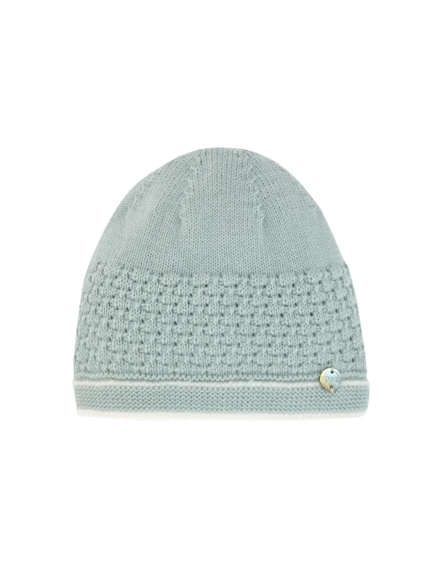 Cappello Paz Rodriguez in maglia, colore verde tiza, dettaglio punto croce e rifinitura a contrasto. Composizione:100%Lana