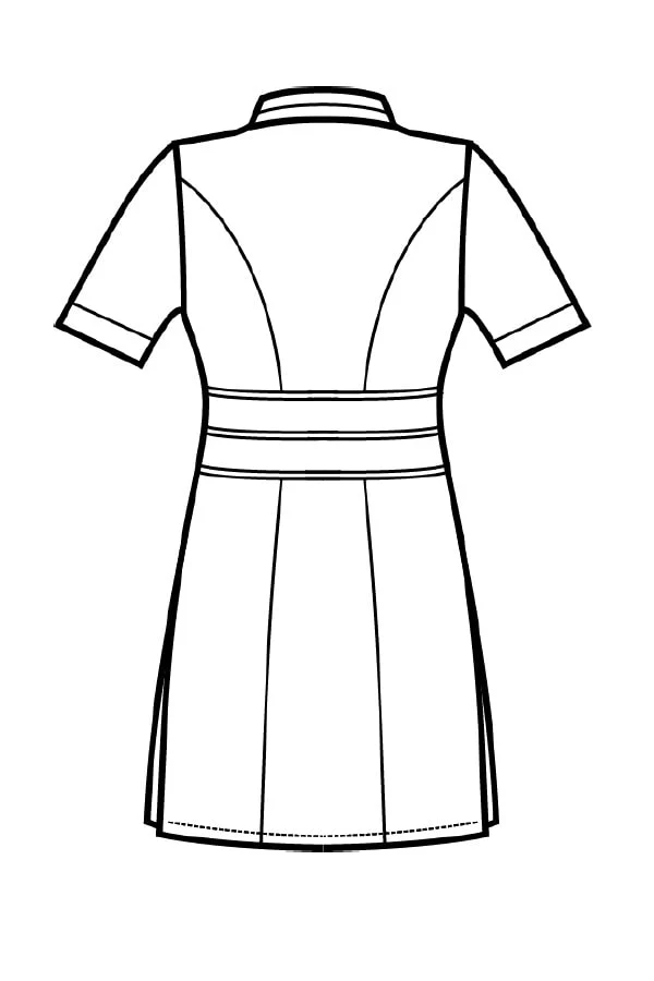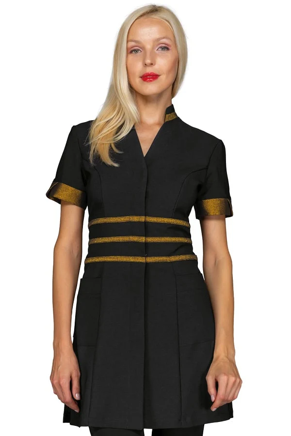 Casacca dalla linea slim sfiancata elegantissima Non passa inosservata. Il disegno slanciato, con un colletto leggero e bordato alla coreana. Segue il fianco valorizzando il fisico. L’apertura รจ centrale, invisibile con bottoni a pressione. La linea si stringe in vita e si allarga seguendo i fianchi con degli spacchetti alle estremitร . E’ lunga oltre i fianchi. Dotata anche di 2 comode tasche laterali. E’ una casacca dai lineamenti di un abitino. E’ Raffinata per tutti gli ambienti lavorativi dove deve essere risaltata l’eleganza. Ideale anche per le reception.