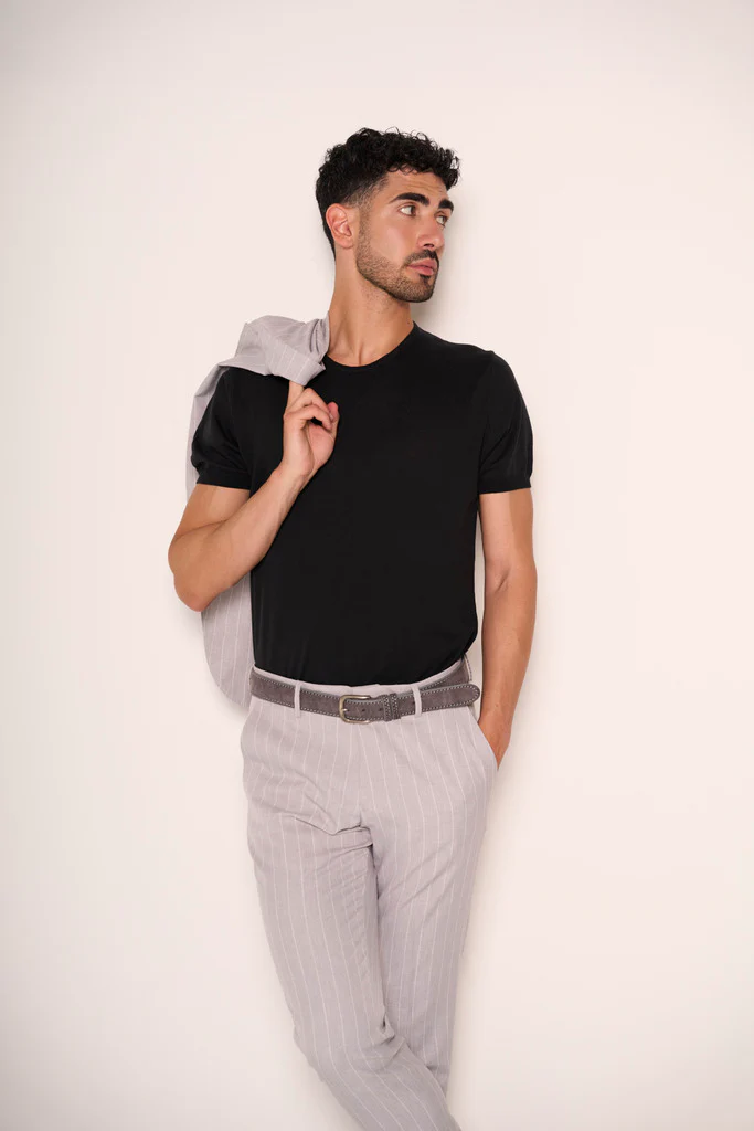 Essenziale ma ricca di carattere, questa cintura in pelle รจ l’accessorio che definisce il look. La struttura solida รจ arricchita da una doppia cucitura a contrasto che ne esalta la lavorazione artigianale e garantisce una maggiore resistenza nel tempo.I fori distanziati di 3,5 cm permettono una regolazione precisa per il massimo comfort, mentre il doppio passante aggiunge funzionalitร ed equilibrio estetico. Completata da una fibbia anticata dallโeffetto vissuto, dona un tocco vintage e autentico a qualsiasi outfit, dal casual al piรน urbano.