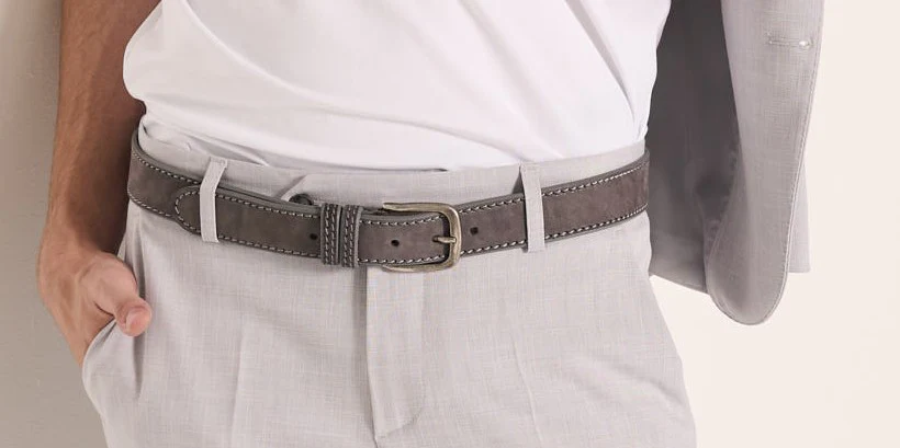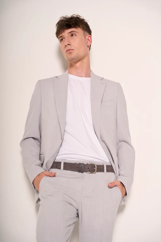 Questa cintura intrecciata in pelle scamosciata grigia aggiunge un tocco artigianale e sofisticato a qualsiasi look. Morbida al tatto ma resistente, si adatta con naturalezza al punto vita e dona carattere anche agli outfit piรน semplici. Perfetta per spezzare con stile completi chiari o pantaloni chino.