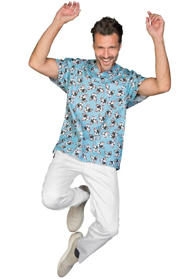 Casacca unisex collo a V in Cotone con fantasia Blue Dog