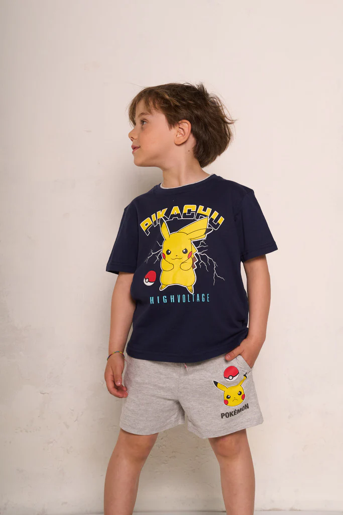 DESCRIZIONE:Completo bambino pantaloncino e maglietta con stampa Pokemon Pikachu.Codice prodotto: 255848