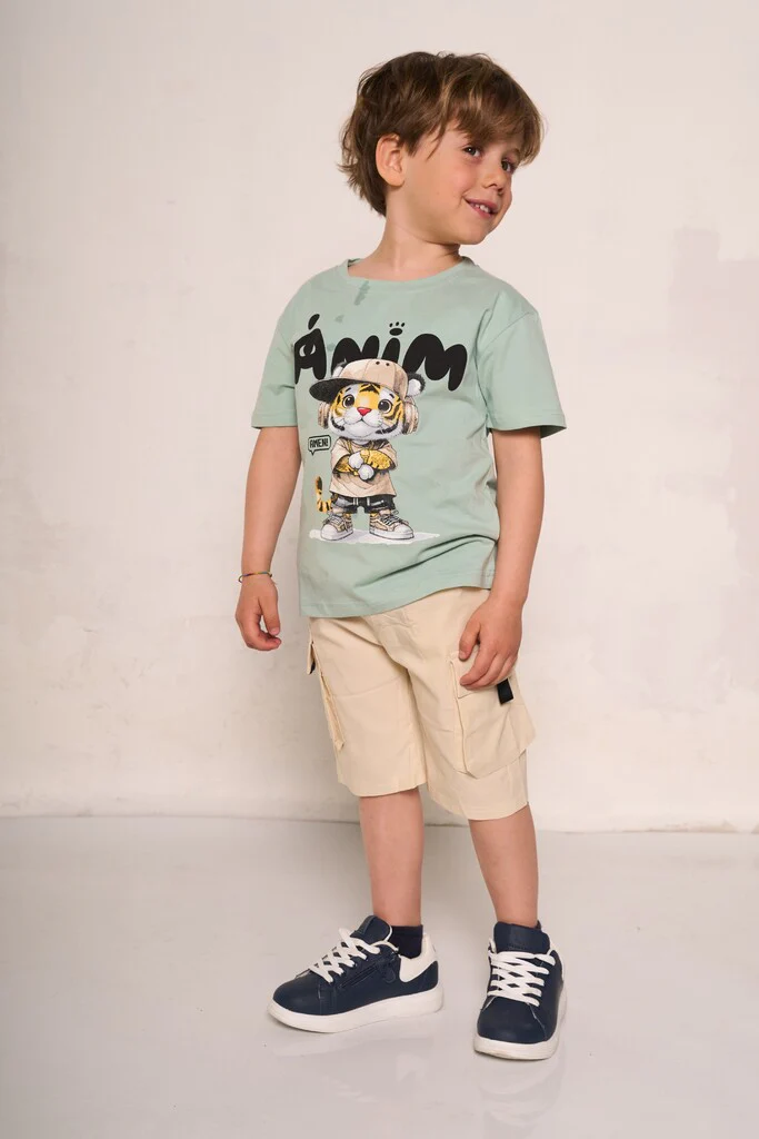Completo pantaloncino e t-shirt da bimbo con stampa tigre.