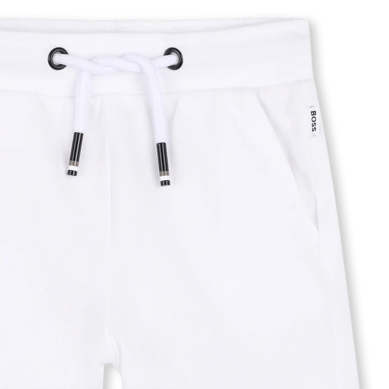 Stimola la creativitร del tuo piccolo con questo set BOSS elegante e comodo. Composto da una polo in cotone in spandex pique e pantaloncini bermuda in jersey, questo set รจ perfetto per le giornate di sole. La chiusura dei bottoni e il contrasto bicolore aggiungono un tocco moderno, mentre l’iconico logo BOSS sul petto enfatizza uno stile chic. Con maniche a coste e bermuda elasticizzati, questo set รจ pensato per accompagnare ogni movimento e avventura!