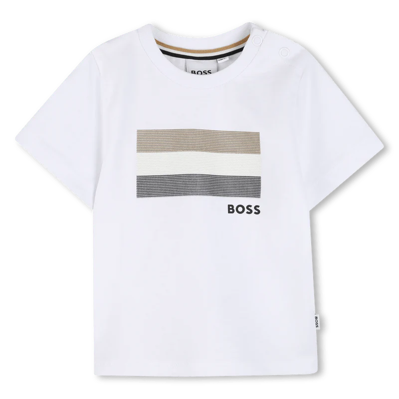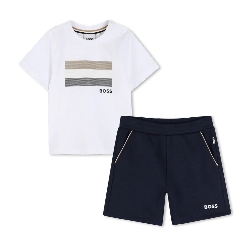 Recensisci per primo “COMPLETO T-SHIRT BIANCA + BERMUDA BLU CON LOGO BOSS”
