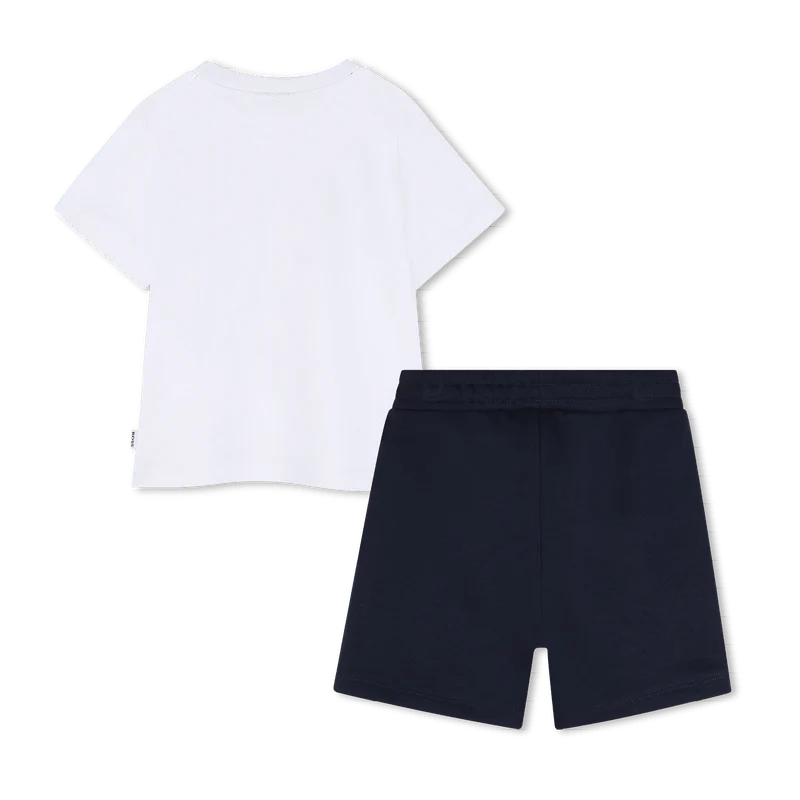 COMPLETO T-SHIRT BIANCA + BERMUDA BLU CON LOGO BOSS