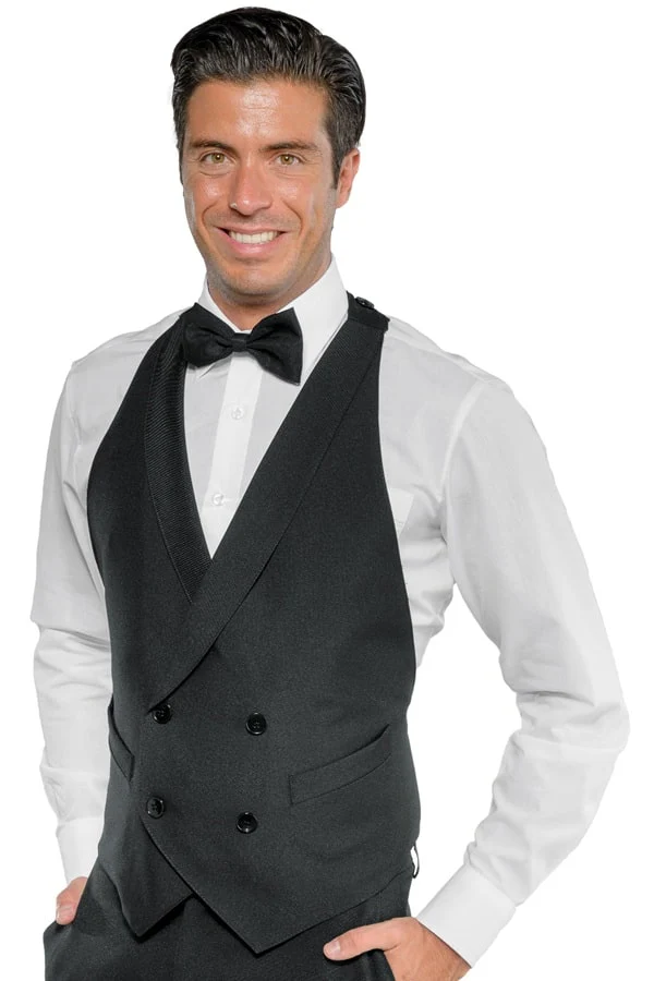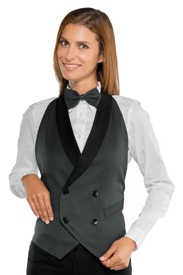 Questo gilet doppiopetto ha il vantaggio di non richiedere taglie avendo una esclusiva vestibilitร onesize. Si indossa nella parte anteriore come un grembiule e si regola la taglia mediante una fibia posteriore. Con 4 bottoni fissi e due tasche utilizzabili il Darlington รจ una scelta pratica e veloce per essere eleganti