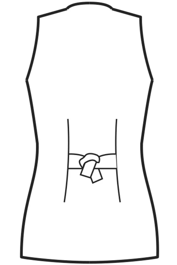 Elegante gilet da Donna con collo a v senza risvolto, bottoni in tinta, 2 tasche estetiche con alette e fettuccia di raccordo posteriore senza fibia. Piรน lungo segue e supera i fianchi