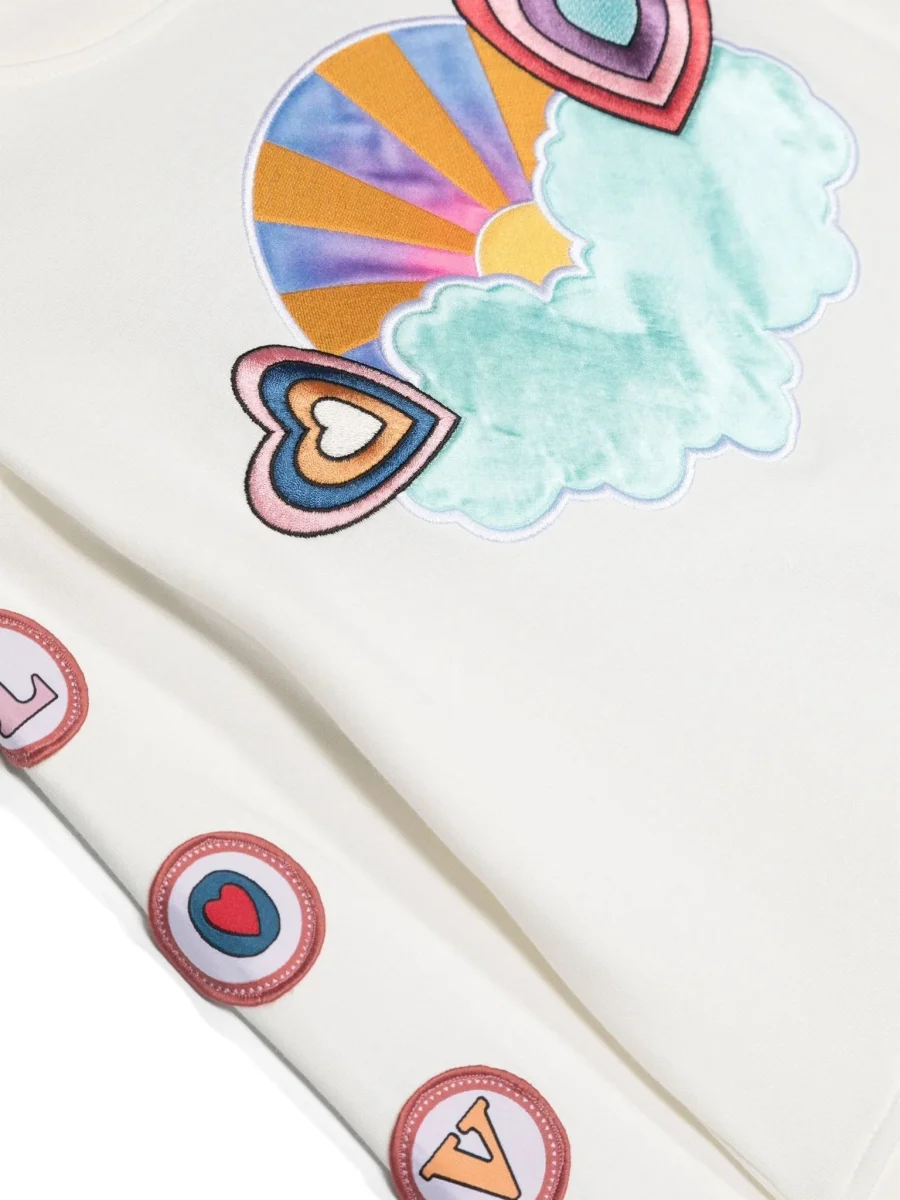 Felpa con motivo a cuore Caratteristiche tonalitร bianco avorio cotone trama jersey applicazione a lettere sulla manica motivo con ricamo applicazione frontale girocollo maniche lunghe orlo dritto Composizione cotone 100%