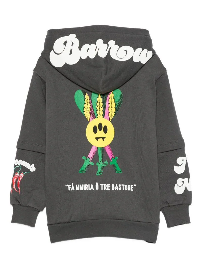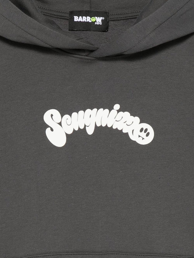 Felpa in cotone 100% grigio asfalto con cappuccio e stampa con logo Barrow Kids. Modello con maniche lunghe, tasca a canguro e applicazioni sulle maniche.