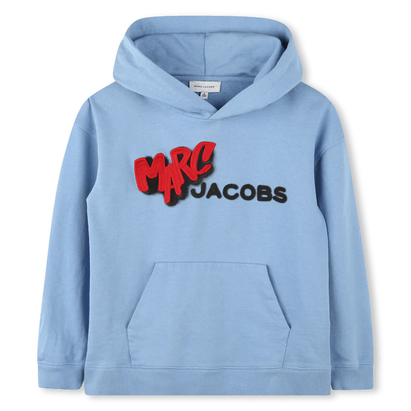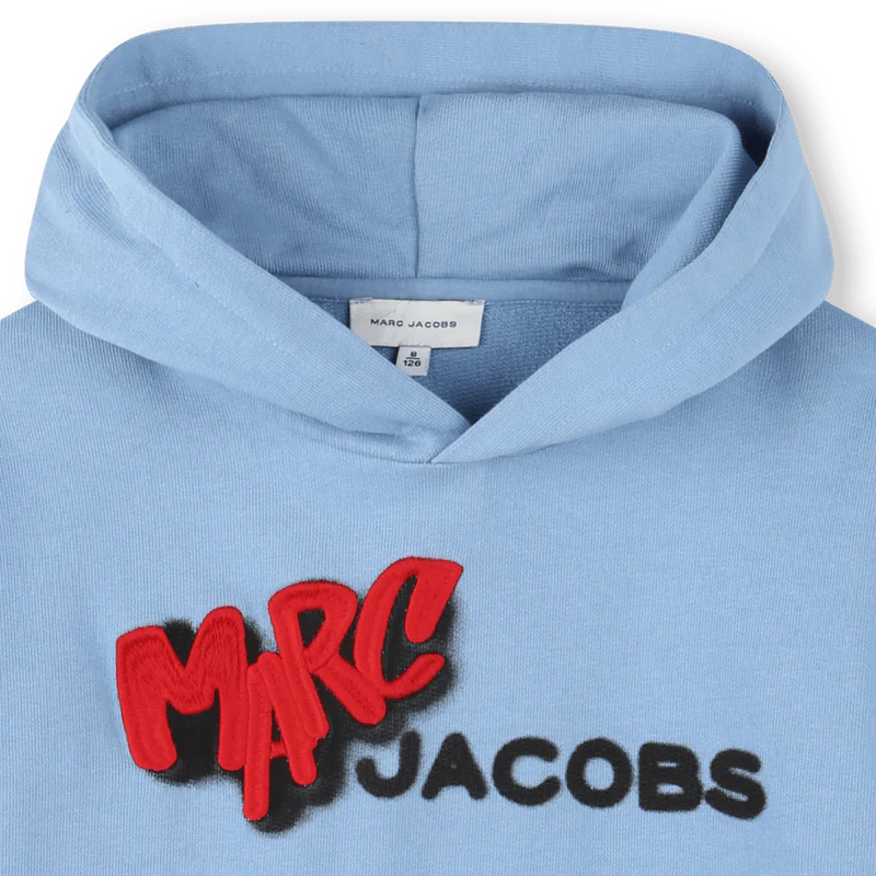 FELPA CON CAPPUCCIO CELESTE CON LOGO ROSSO/NERO MARC JACOBS