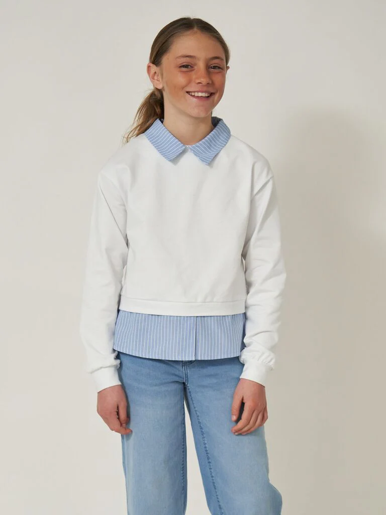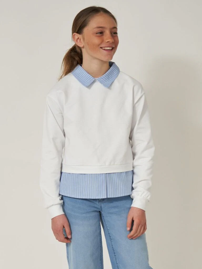 DESCRIZIONEFelpa con finta camicia a righeComposizione: 100% cotoneCodice prodotto: 251178