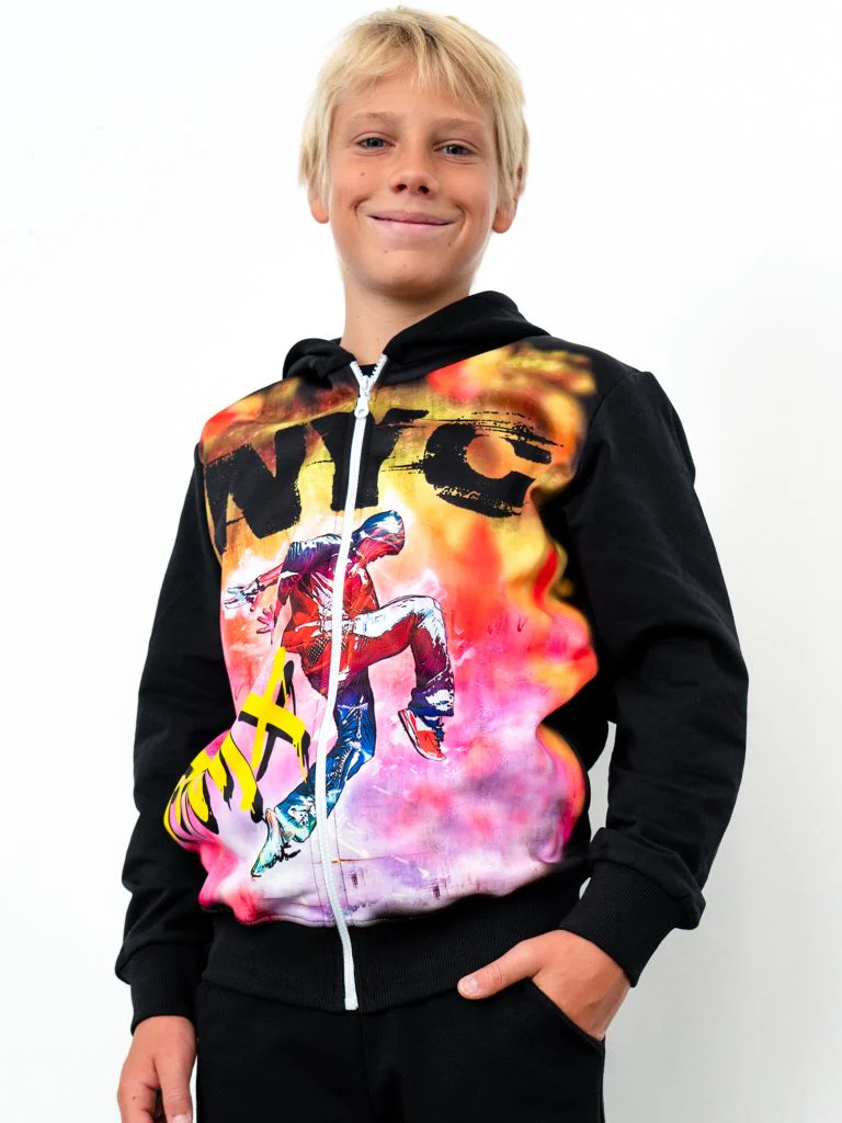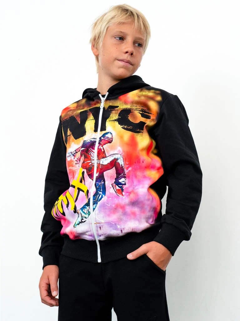 Felpa con zip e cappuccio a maniche lunghe. Stampa frontale