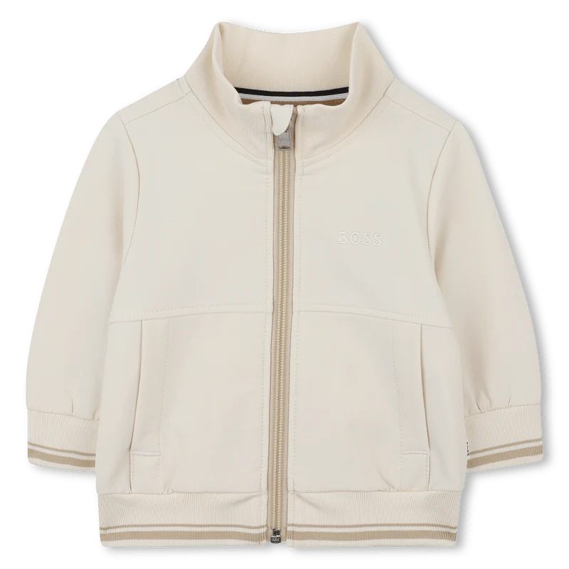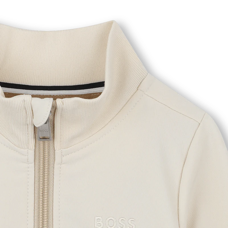 Questo cardigan da jogging BOSS in poliestere elastan combina comfort e stile sportivo. Il colletto rialzato e la zip frontale aggiungono un tocco di praticitร , mentre la stampa del logo sul petto mostra con orgoglio l’identitร del brand. Il cut-out frontale, le tasche laterali e gli orli e i polsini a righe offrono dettagli moderni e dinamici, perfetti per un look casual ma raffinato.
