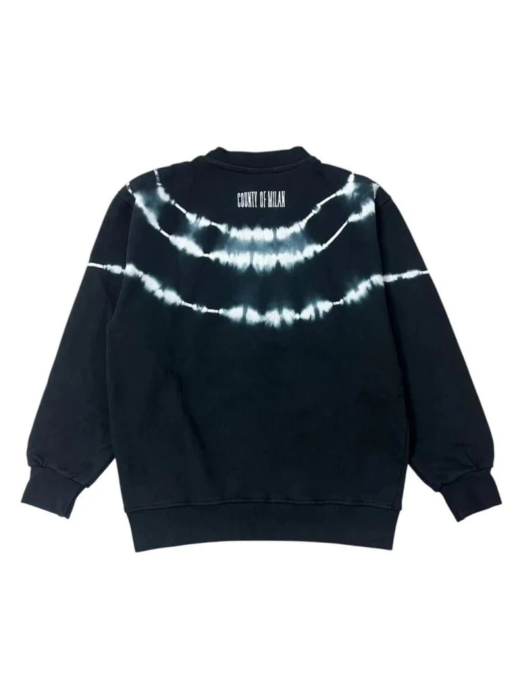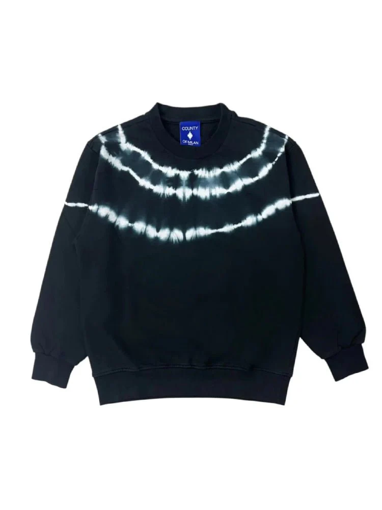 FELPA GIRO COLLO NERA CON STAMPA A CONTRASTO MARCELO BURLON E POLSINI ELASTICI