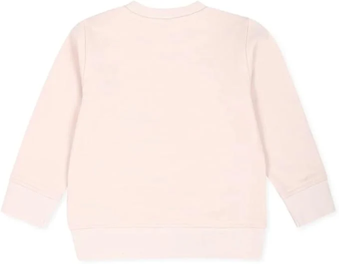 Felpa rosa in cotone organico felpato, a maniche lunghe, con girocollo a costine, chiusura con bottoni automatici sulla spalla. ร decorata con stampa logo e fiori sul davanti. Dettagli: 100% Cotone organico