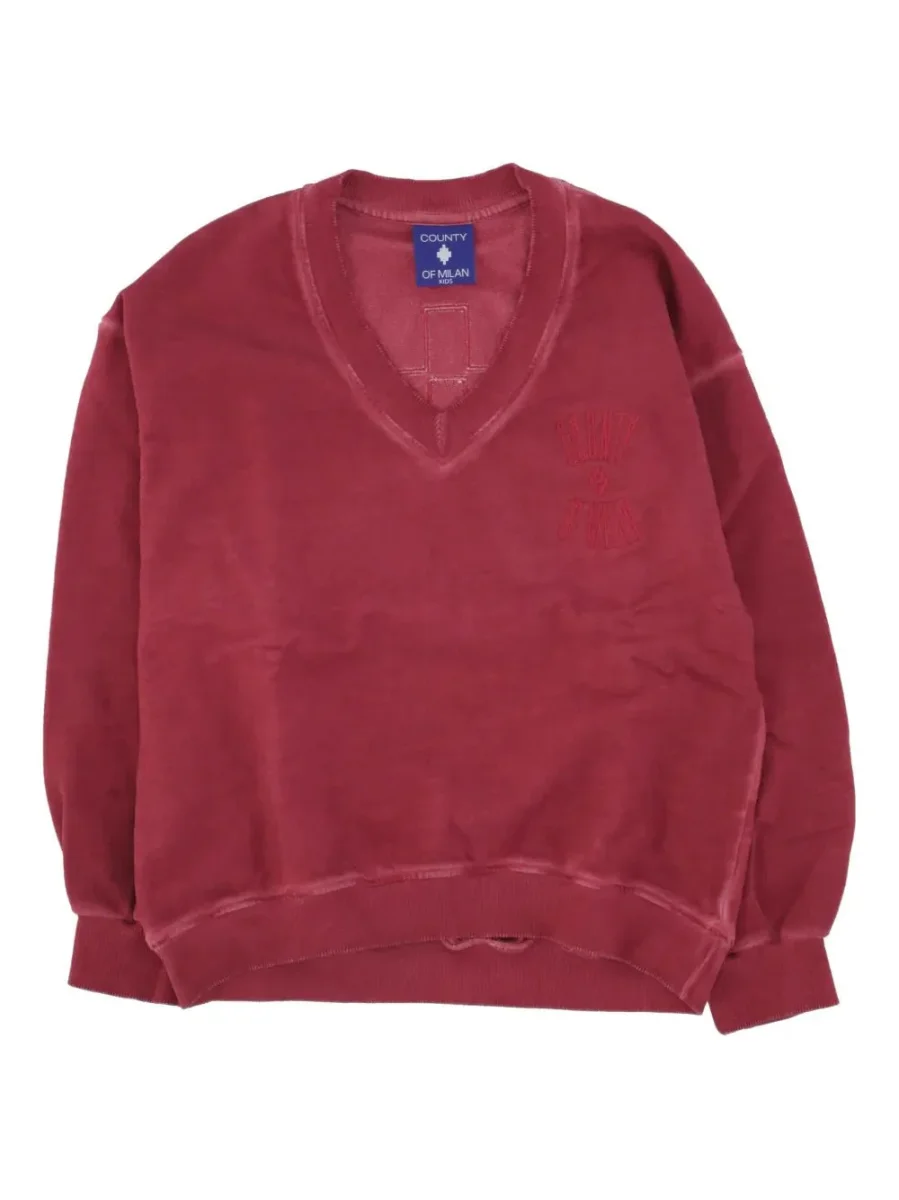 FELPA ROSSA CON SCOLLO A V E LOGO MARCELO BURLON