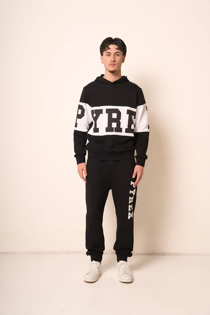 Felpa Uomo Nera con Cappuccio e Stampa Logo PYREX