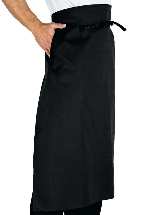 Grembiule avvolgente e lungo stile Francese con 2 tasche laterali stile pantalone diagonali e lunga fettuccia sottile. Taglio unico. Disponibile in 2 colori. Lunghezza 90 cm