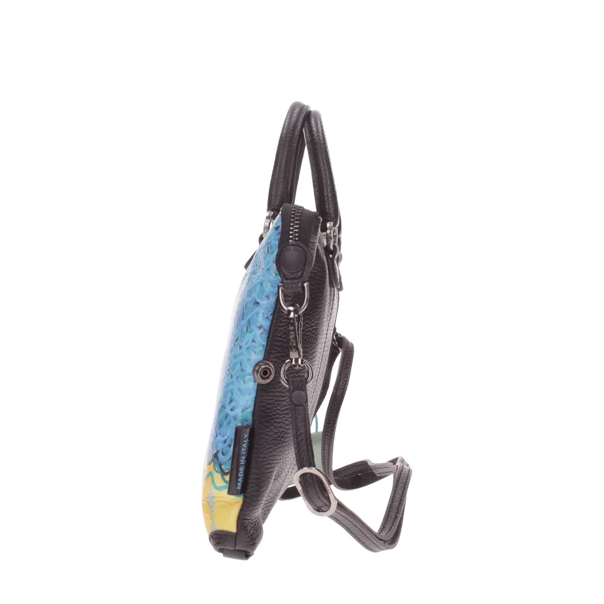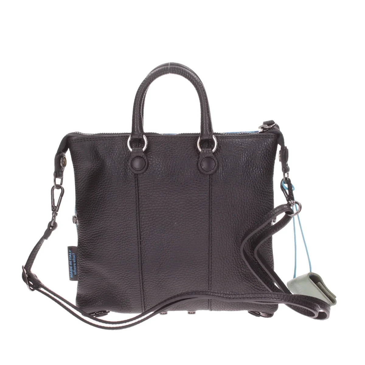 La linea Icon Black, icona di Gabs, si distingue per il suo design audace, caratterizzato da un bottone nero, una zip turchese e una tracolla a nastro. ร la scelta ideale per chi cerca un accessorio versatile e di alta qualitร . Lโinterno รจ foderato, mentre il materiale utilizzato per la realizzazione รจ la pregiata pelle di vitello stampata, che conferisce alla borsa un aspetto unico e duraturo.