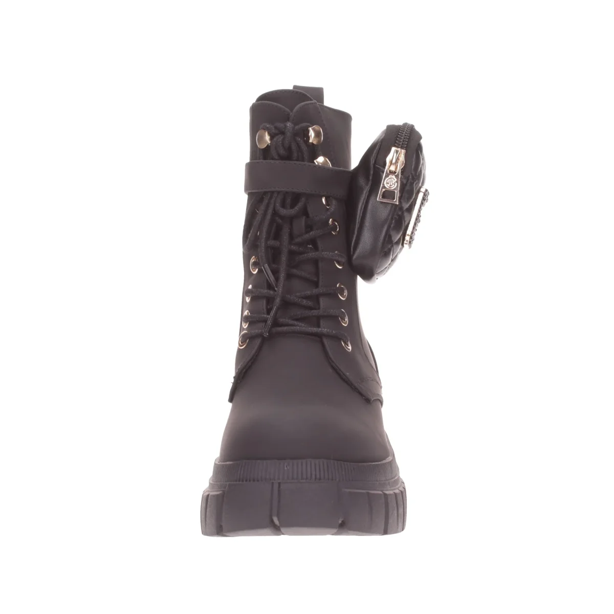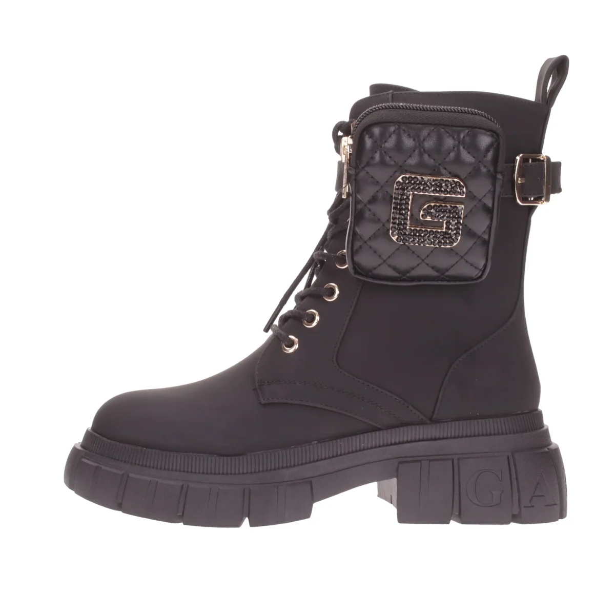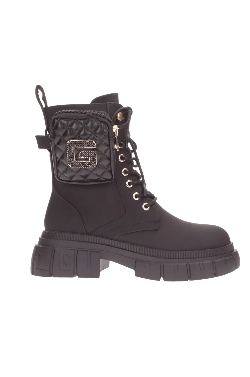 Un anfibio dal design minimalista, realizzato in ecopelle gommata tinta unita, caratterizzato da una stringatura tradizionale con lacci sottili che ne facilita la calzata. La tomaia รจ arricchita da un marsupio removibile con logo metallico del brand, decorato con strass a contrasto. All’interno, lo stivaletto รจ foderato in vera pelle e dotato di un comodo plantare anatomico per il massimo comfort. Il fondo in gomma, con suola antiscivolo e logo tono su tono, garantisce stabilitร e sicurezza. Moderno e innovativo, questo stivaletto di Gaelle Paris rappresenta la nuova collezione autunno-inverno, pensato per la donna audace e attenta ai dettagli, che ama distinguersi con stile.