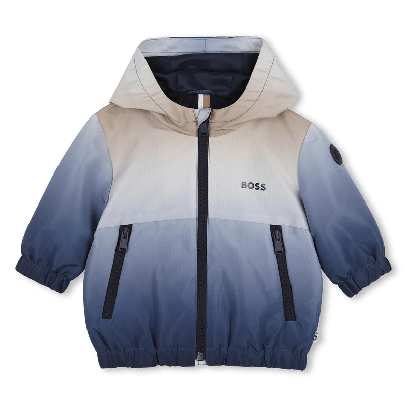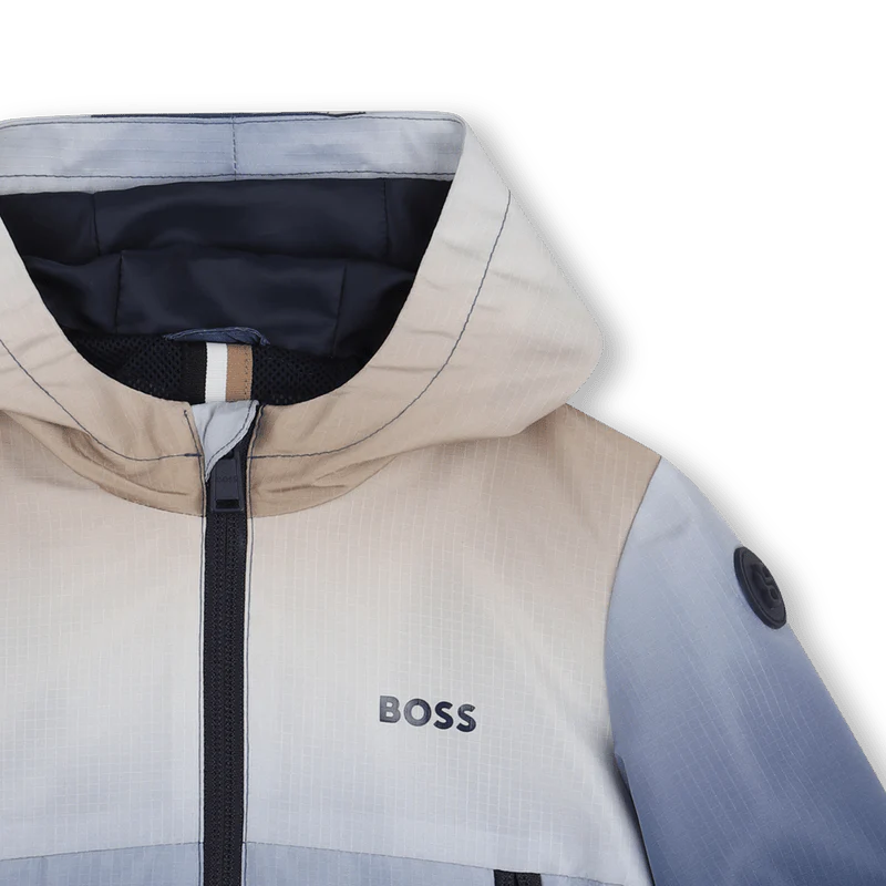 GIACCA A VENTO SFUMATA BLU-BEIGE CON LOGO GOMMATO BOSS