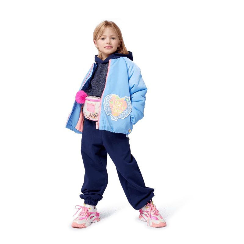 GIACCA CELESTE CON ZIP ROSA FLUO BILLIEBLUSH