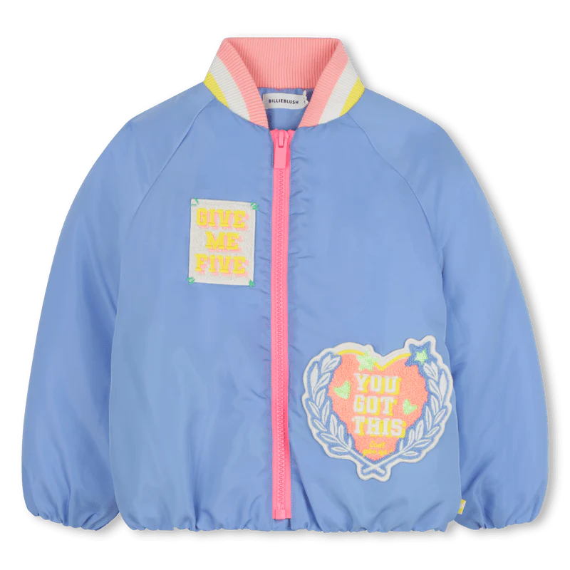 Questa giacca in poliestere BILLIEBLUSH รจ un must-have per un look pratico ed elegante. Con i suoi due stemmi sul davanti, dona un tocco originale e moderno. La chiusura con zip e il colletto a coste a righe assicurano comfort e moda, mentre le maniche raglan offrono una grande libertร di movimento. Un modello perfetto per aggiungere una nota sportiva ed elegante agli outfit del tuo bambino.